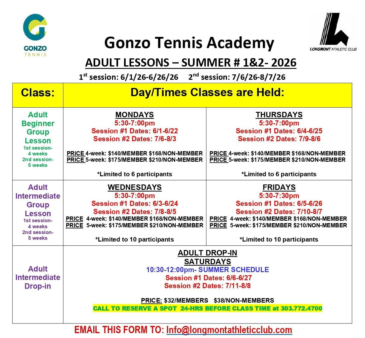 PLEASE EMAIL COMPLETED FORM TO INFO@LONGMONTATHLETICCLUB.COM AND WE WILL CALL YOU TO COLLECT CREDIT CARD INFORMATION.