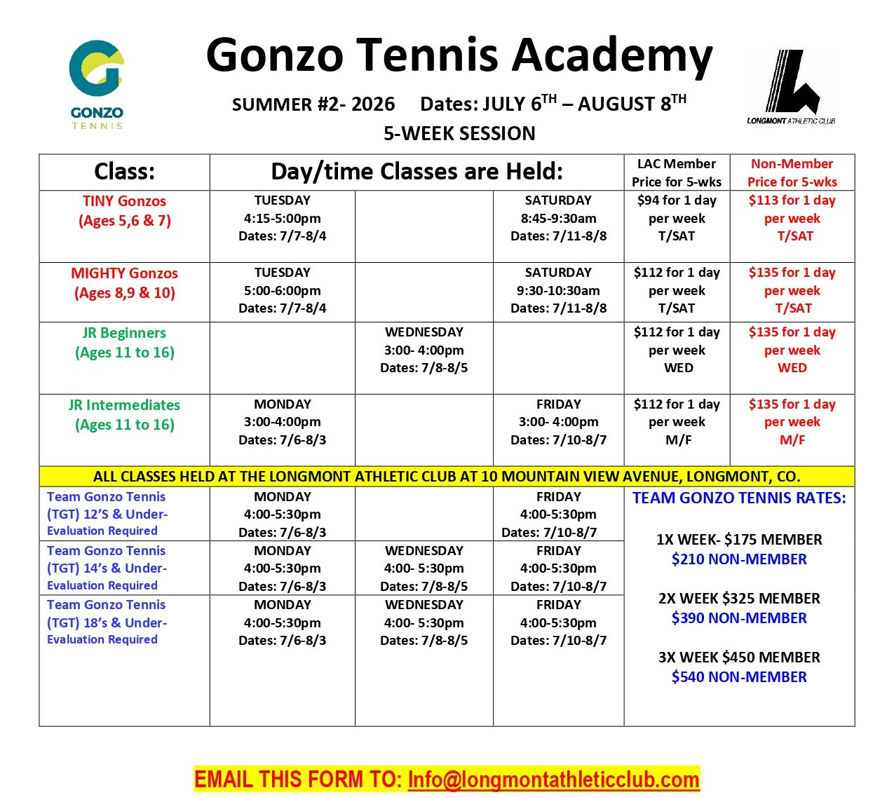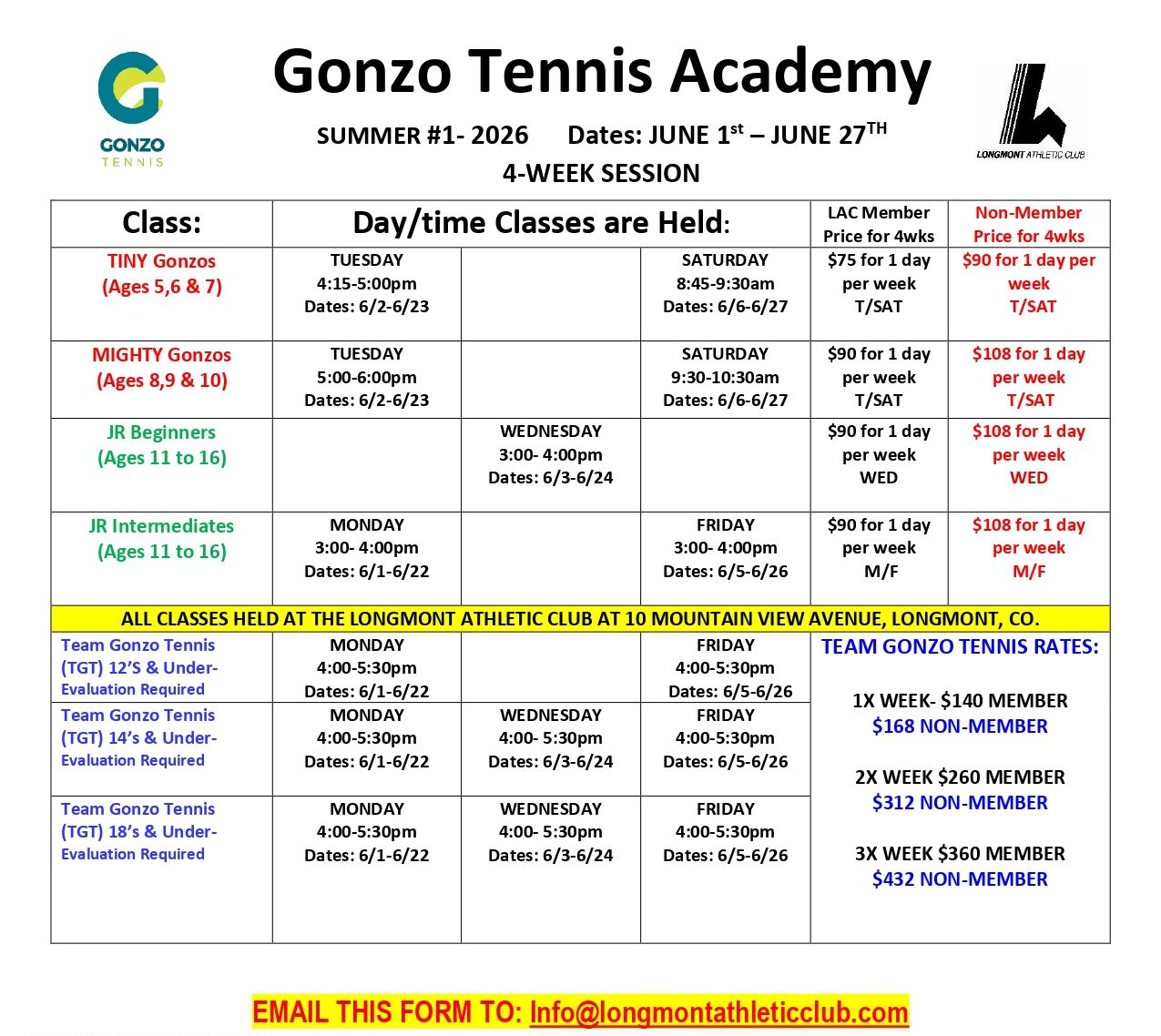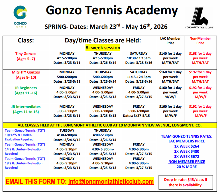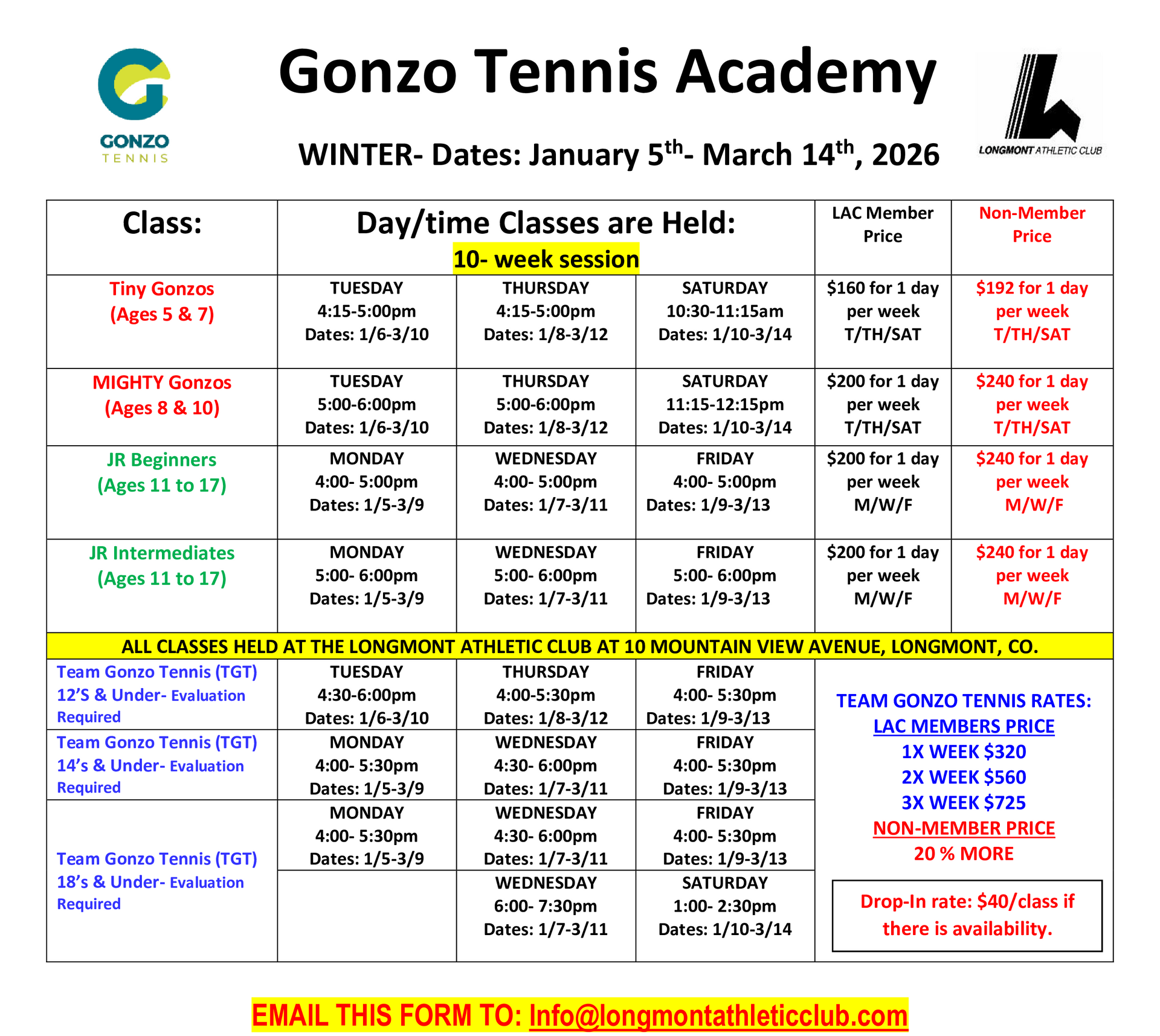 PLEASE EMAIL COMPLETED FORM TO INFO@LONGMONTATHLETICCLUB.COM AND WE WILL CALL YOU TO COLLECT CREDIT CARD INFORMATION.